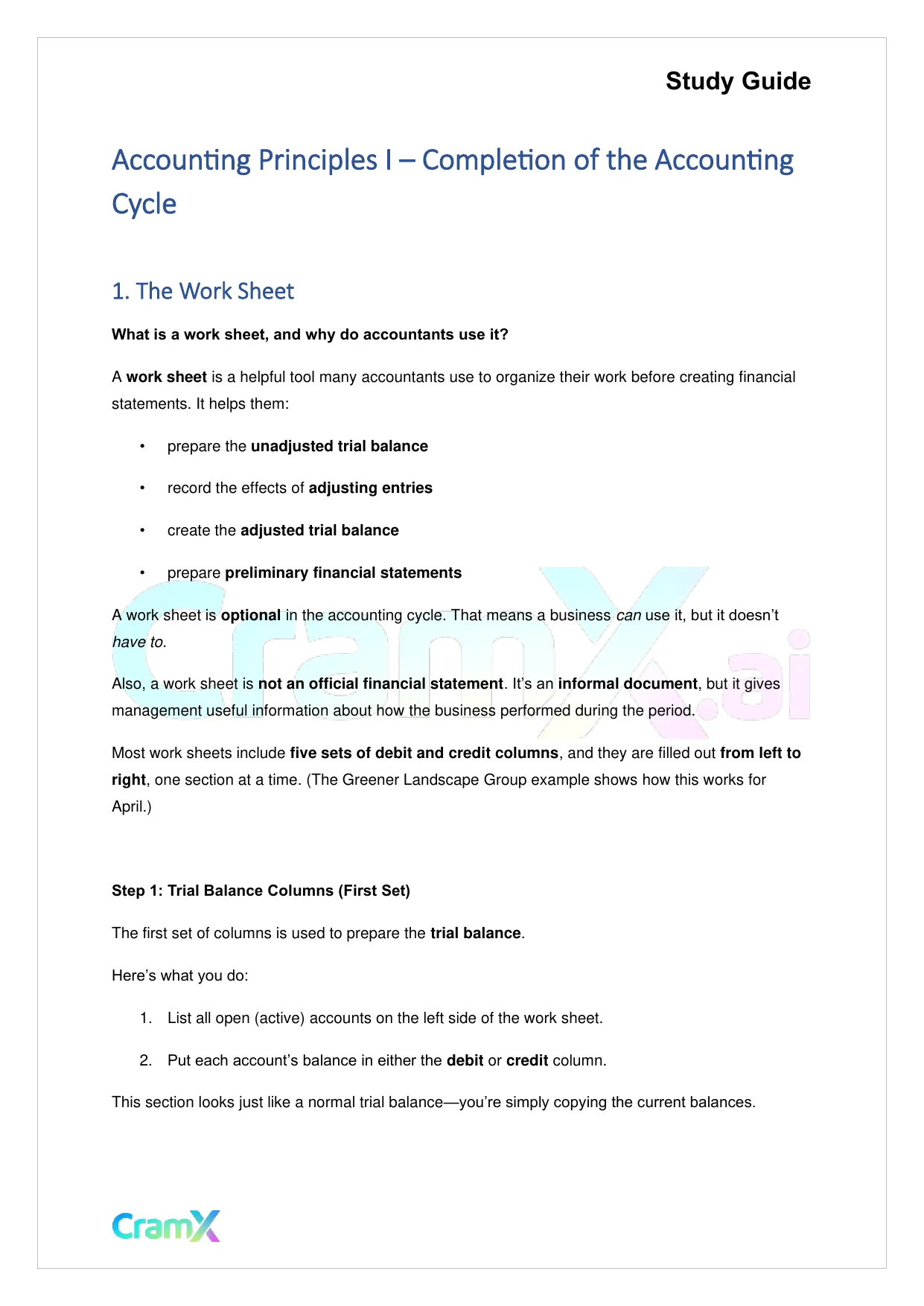 This document provides study materials related to Accounting Principles I – Completion of the Accounting Cycle. It may include explanations, summarized notes, examples, or practice questions designed to help students understand key concepts and review important topics covered in their coursework.