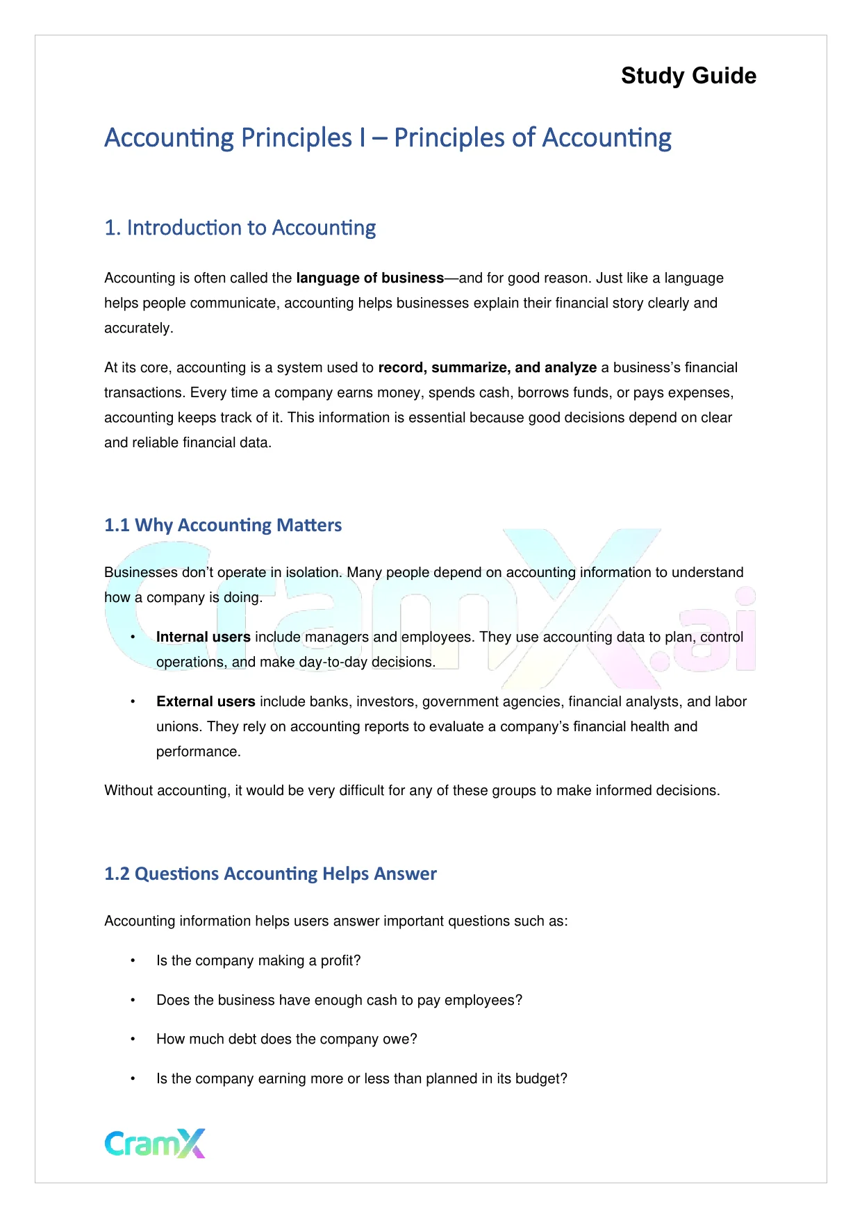 Students studying Accounting or related courses can use this material as a reference when preparing for assignments, exams, or classroom discussions. Resources on CramX may include study notes, exam guides, solutions, lecture summaries, and other academic learning materials.