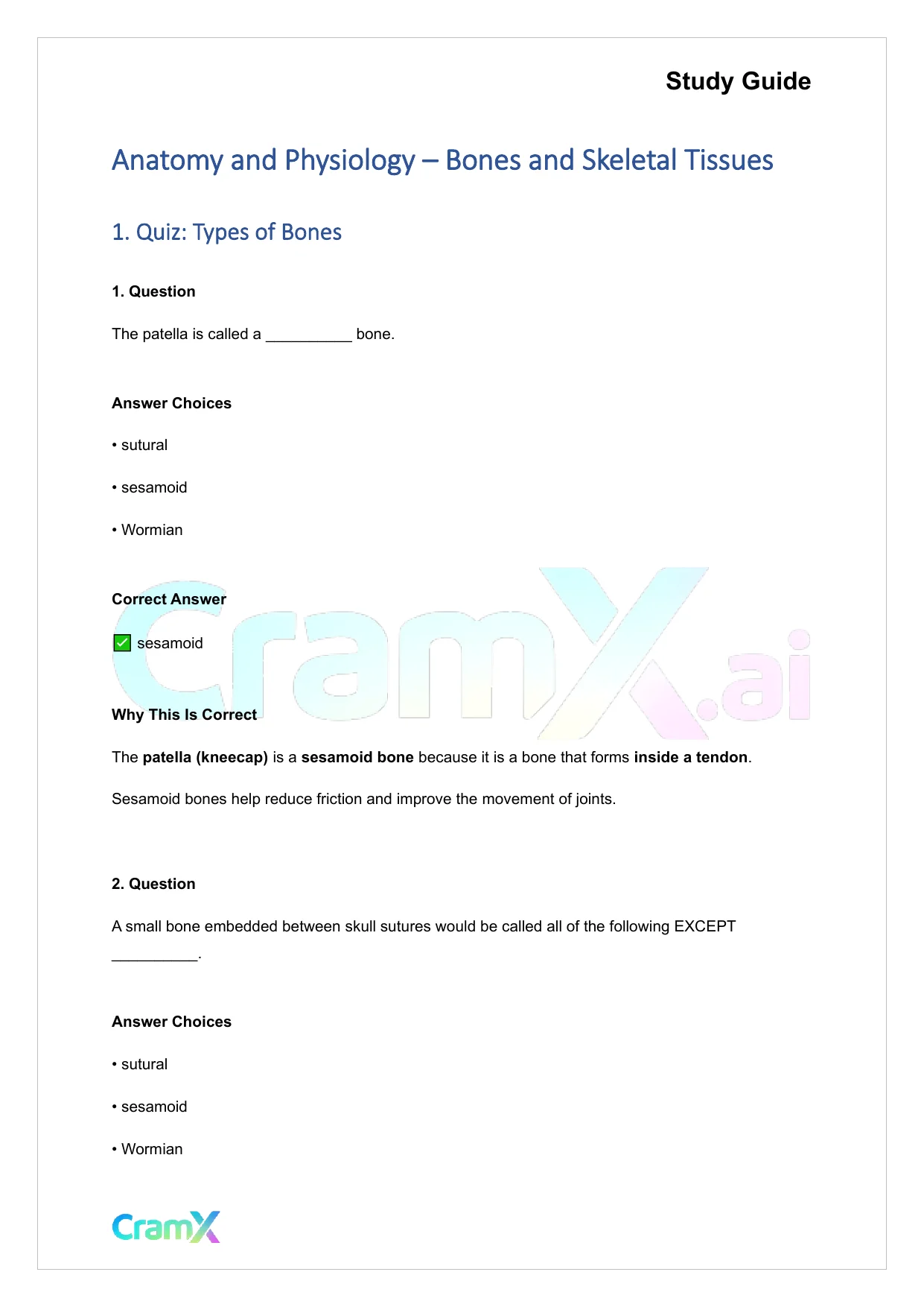 Students studying Anatomy and Physiology or related courses can use this material as a reference when preparing for assignments, exams, or classroom discussions. Resources on CramX may include study notes, exam guides, solutions, lecture summaries, and other academic learning materials.