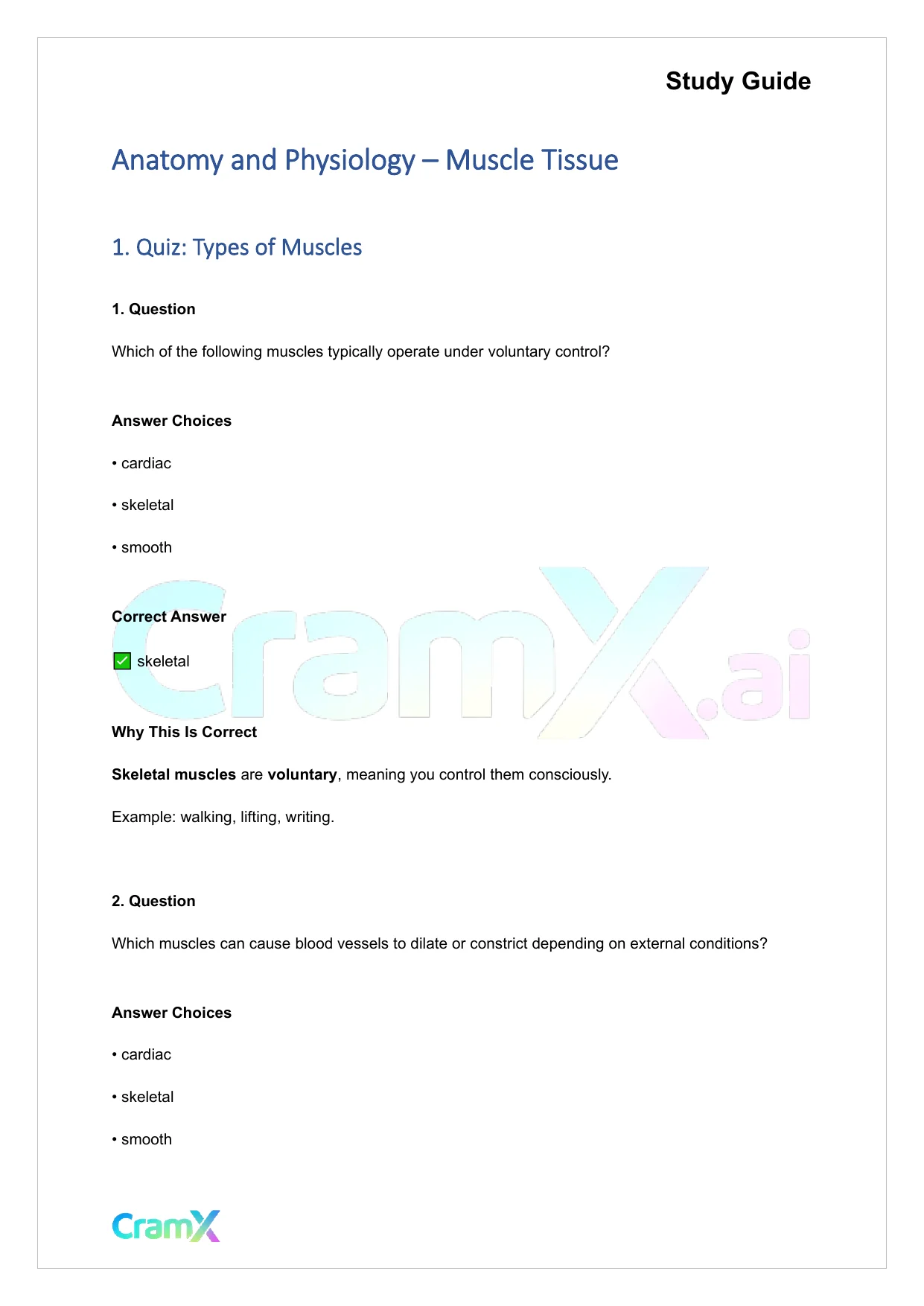 Students studying Anatomy and Physiology or related courses can use this material as a reference when preparing for assignments, exams, or classroom discussions. Resources on CramX may include study notes, exam guides, solutions, lecture summaries, and other academic learning materials.