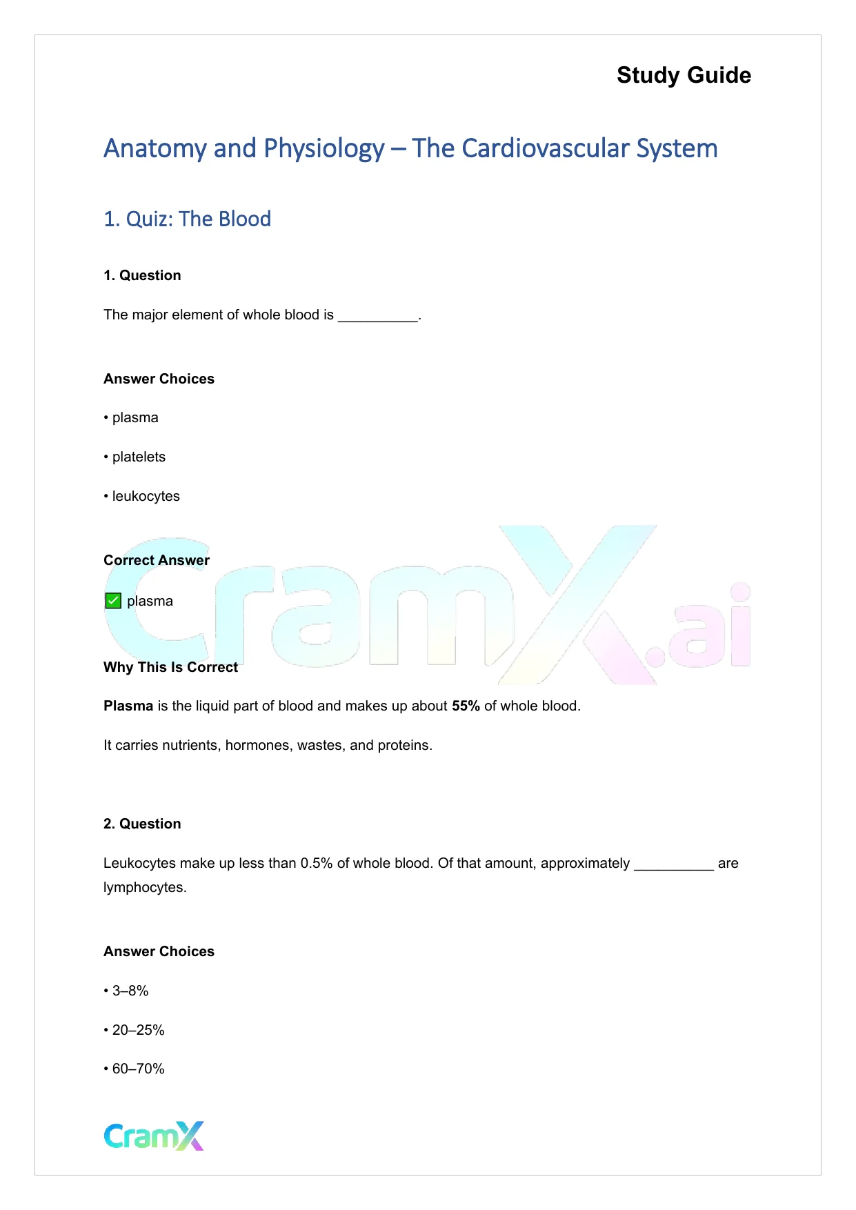 Students studying Anatomy and Physiology or related courses can use this material as a reference when preparing for assignments, exams, or classroom discussions. Resources on CramX may include study notes, exam guides, solutions, lecture summaries, and other academic learning materials.