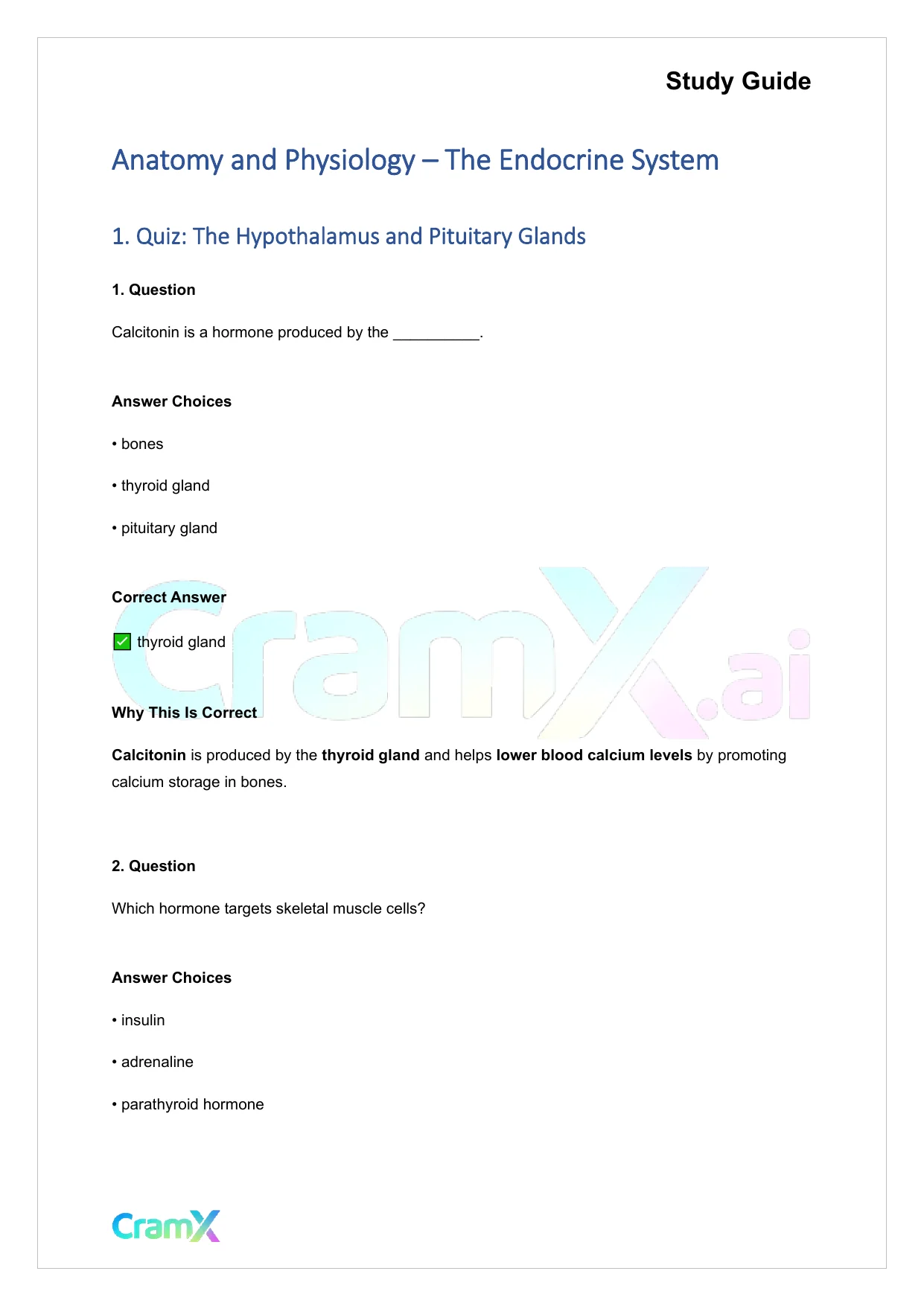 Students studying Anatomy and Physiology or related courses can use this material as a reference when preparing for assignments, exams, or classroom discussions. Resources on CramX may include study notes, exam guides, solutions, lecture summaries, and other academic learning materials.