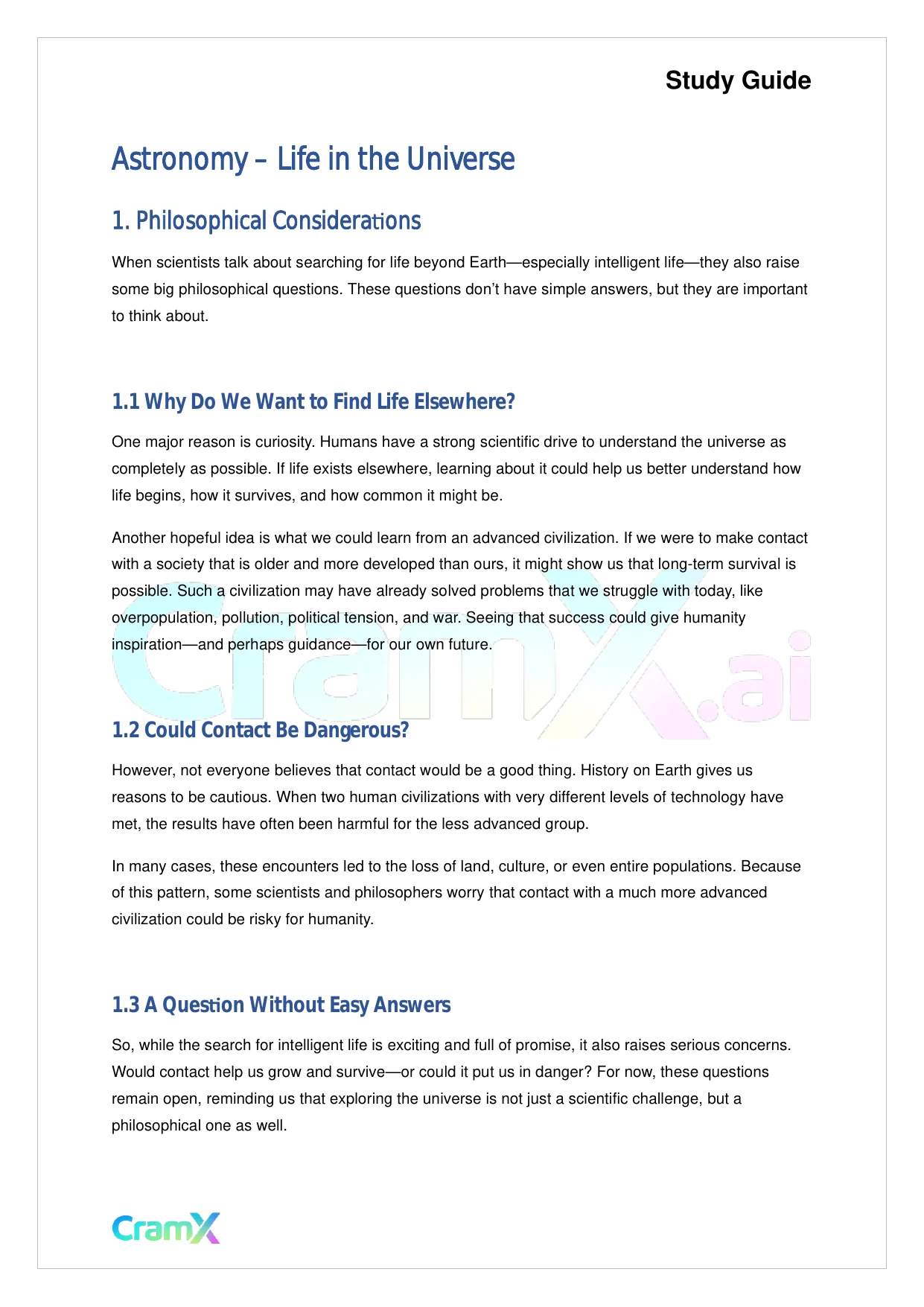 Students studying Astronomy or related courses can use this material as a reference when preparing for assignments, exams, or classroom discussions. Resources on CramX may include study notes, exam guides, solutions, lecture summaries, and other academic learning materials.