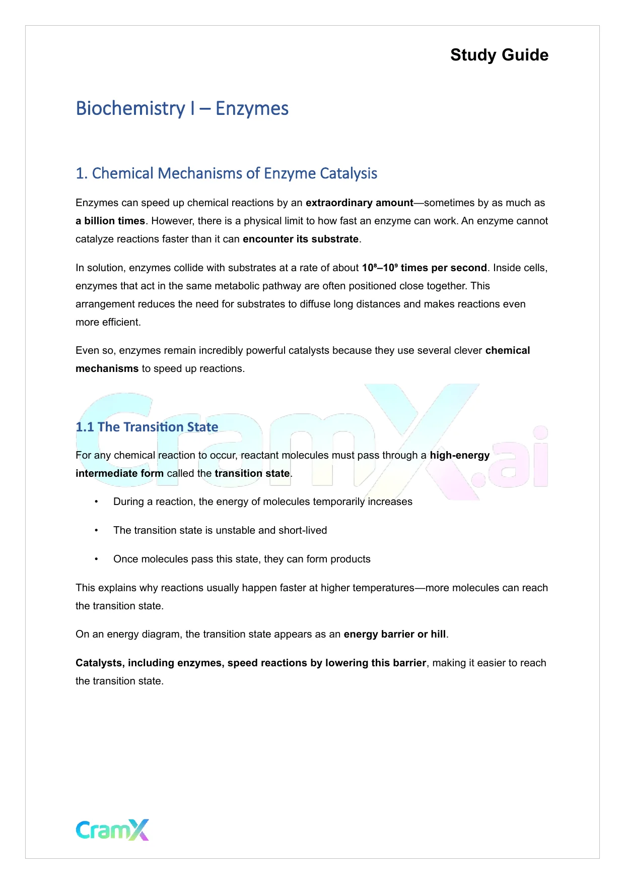 Students studying Biochemistry or related courses can use this material as a reference when preparing for assignments, exams, or classroom discussions. Resources on CramX may include study notes, exam guides, solutions, lecture summaries, and other academic learning materials.