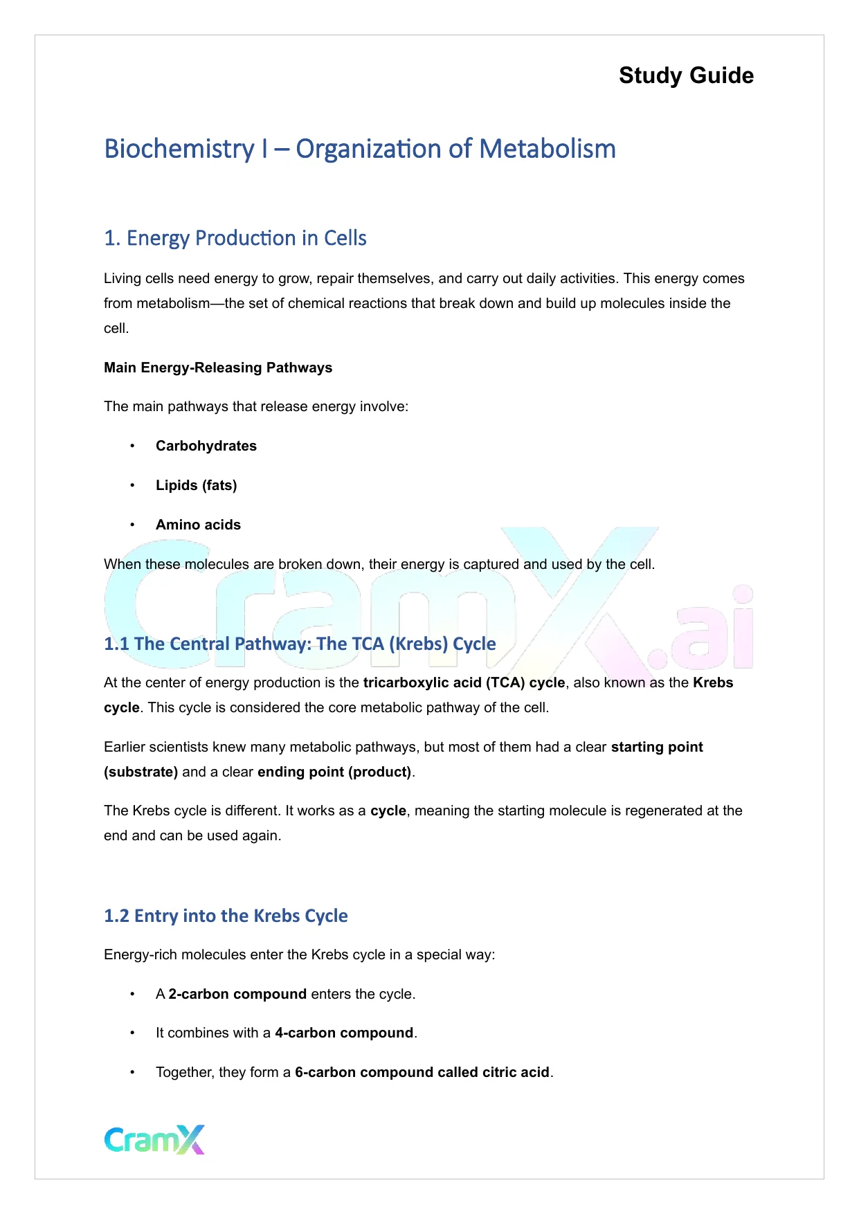 Students studying Biochemistry or related courses can use this material as a reference when preparing for assignments, exams, or classroom discussions. Resources on CramX may include study notes, exam guides, solutions, lecture summaries, and other academic learning materials.