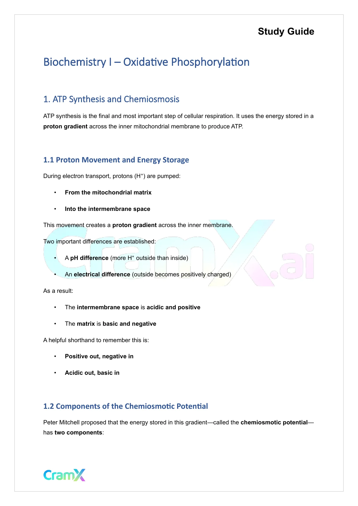 This document provides study materials related to Biochemistry I - Oxidative Phosphorylation. It may include explanations, summarized notes, examples, or practice questions designed to help students understand key concepts and review important topics covered in their coursework.