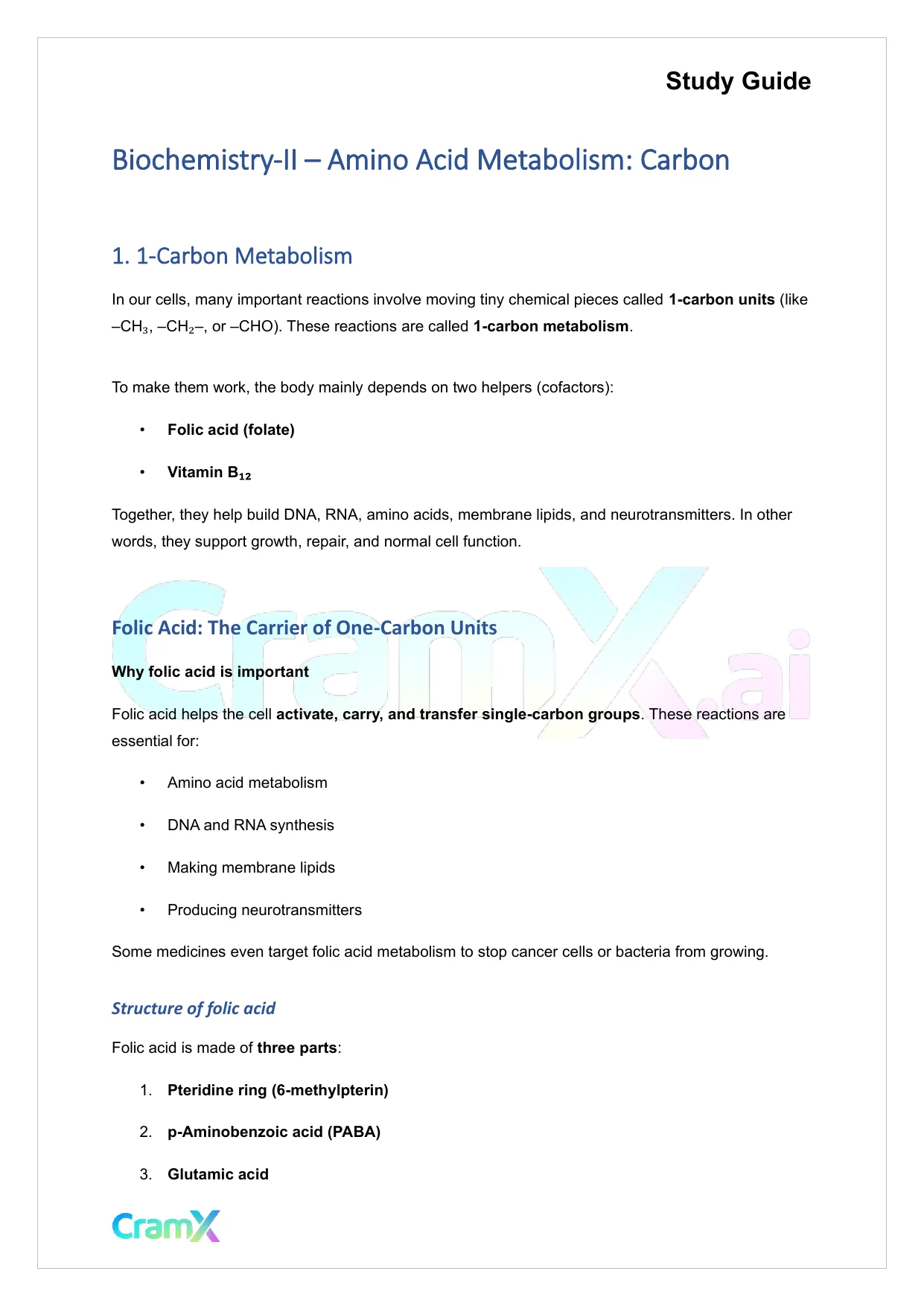 Students studying Biochemistry or related courses can use this material as a reference when preparing for assignments, exams, or classroom discussions. Resources on CramX may include study notes, exam guides, solutions, lecture summaries, and other academic learning materials.
