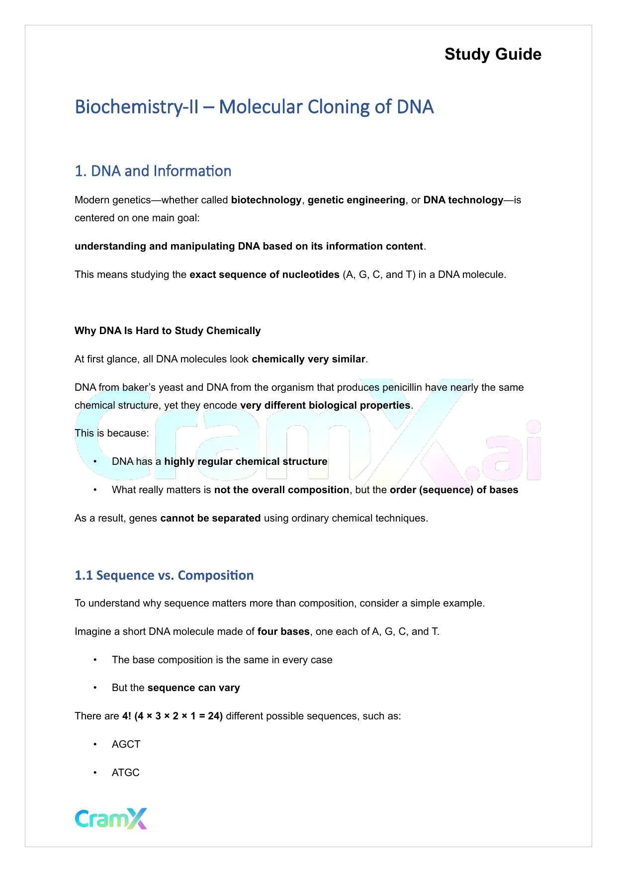 Students studying Biochemistry or related courses can use this material as a reference when preparing for assignments, exams, or classroom discussions. Resources on CramX may include study notes, exam guides, solutions, lecture summaries, and other academic learning materials.
