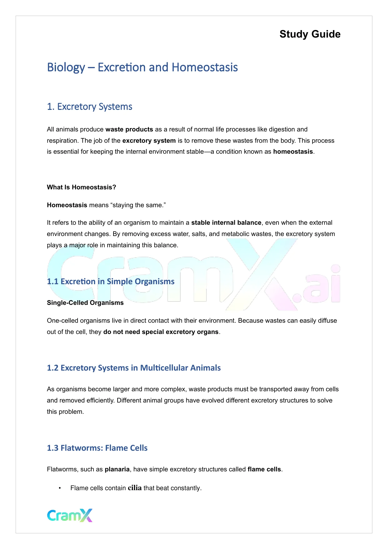 This document provides study materials related to Biology - Excretion and Homeostasis. It may include explanations, summarized notes, examples, or practice questions designed to help students understand key concepts and review important topics covered in their coursework.