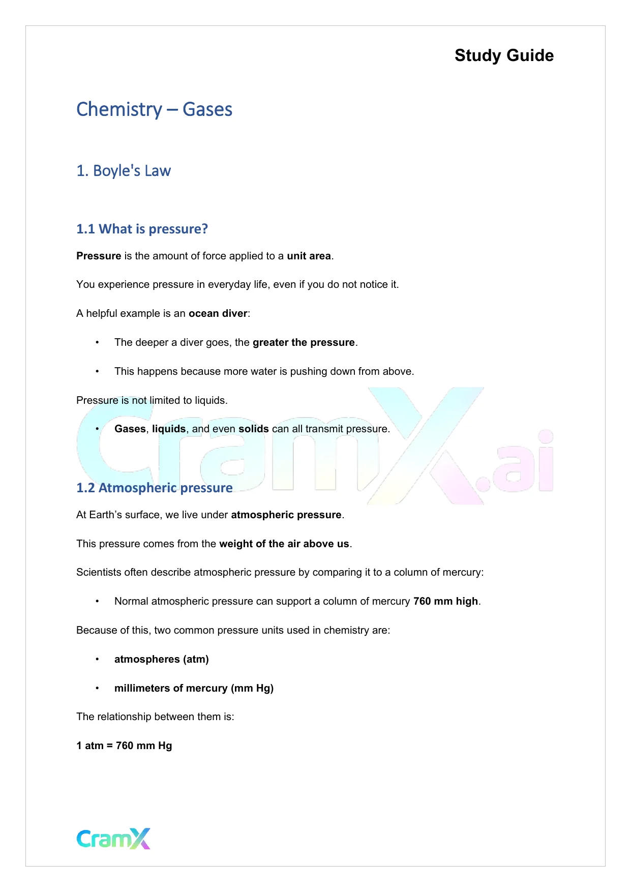 This document provides study materials related to Chemistry - Gases. It may include explanations, summarized notes, examples, or practice questions designed to help students understand key concepts and review important topics covered in their coursework.