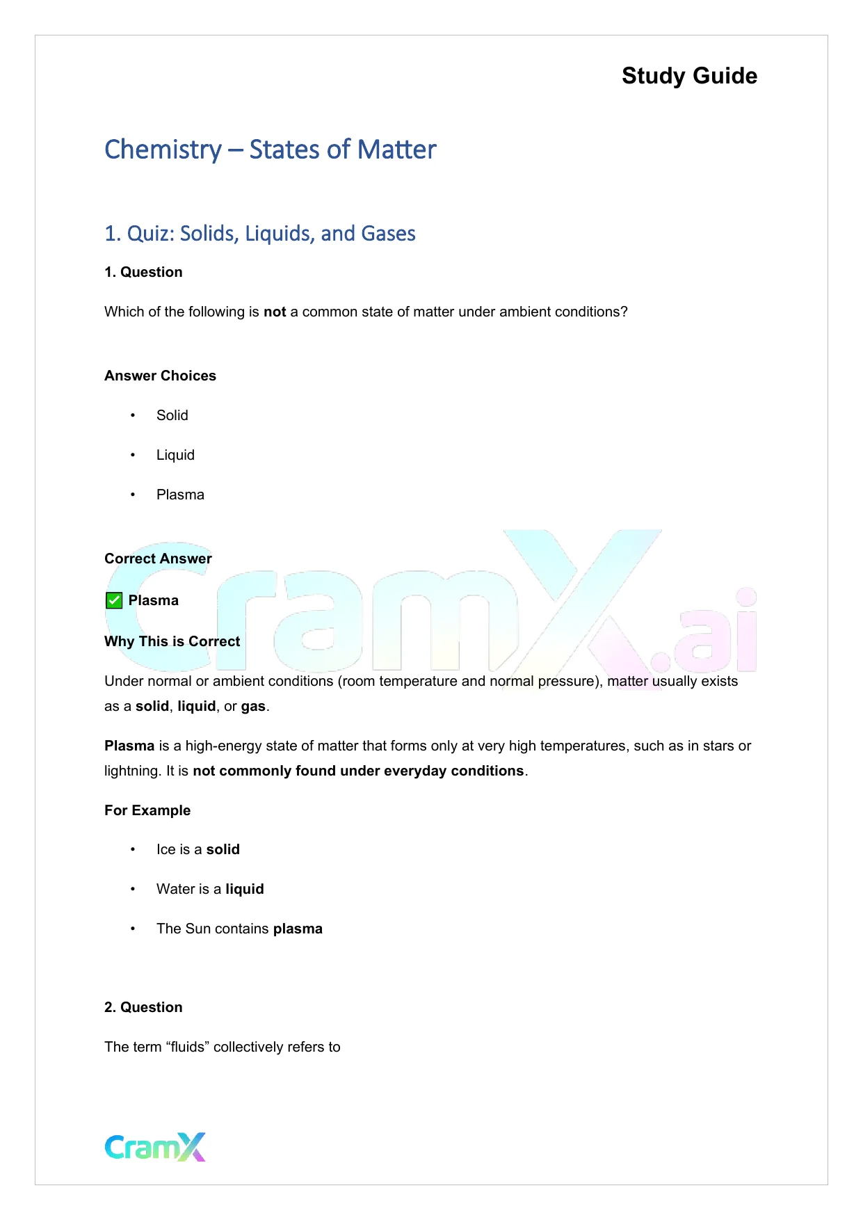 Students studying Chemistry or related courses can use this material as a reference when preparing for assignments, exams, or classroom discussions. Resources on CramX may include study notes, exam guides, solutions, lecture summaries, and other academic learning materials.
