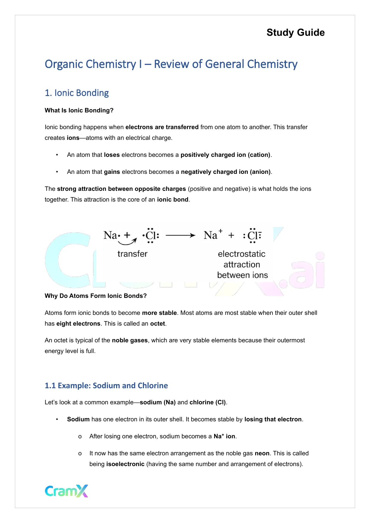 This document provides study materials related to Organic Chemistry I - Review of General Chemistry. It may include explanations, summarized notes, examples, or practice questions designed to help students understand key concepts and review important topics covered in their coursework.