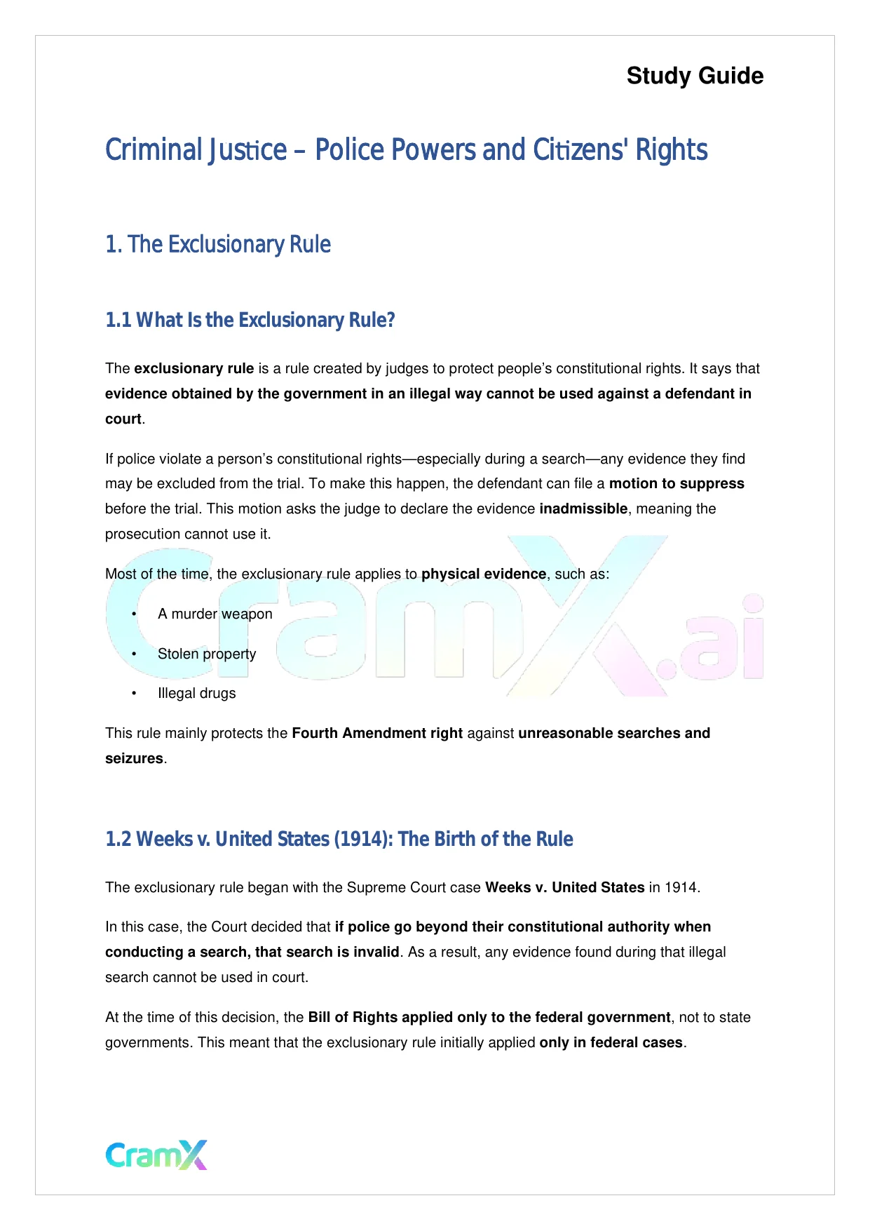 Students studying Criminal Justice or related courses can use this material as a reference when preparing for assignments, exams, or classroom discussions. Resources on CramX may include study notes, exam guides, solutions, lecture summaries, and other academic learning materials.