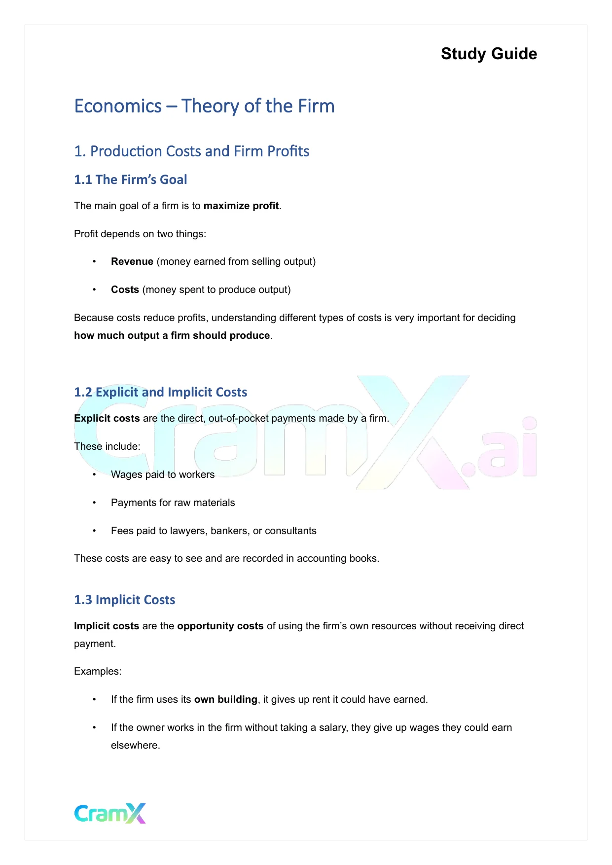 This document provides study materials related to Economics - Theory of the Firm. It may include explanations, summarized notes, examples, or practice questions designed to help students understand key concepts and review important topics covered in their coursework.