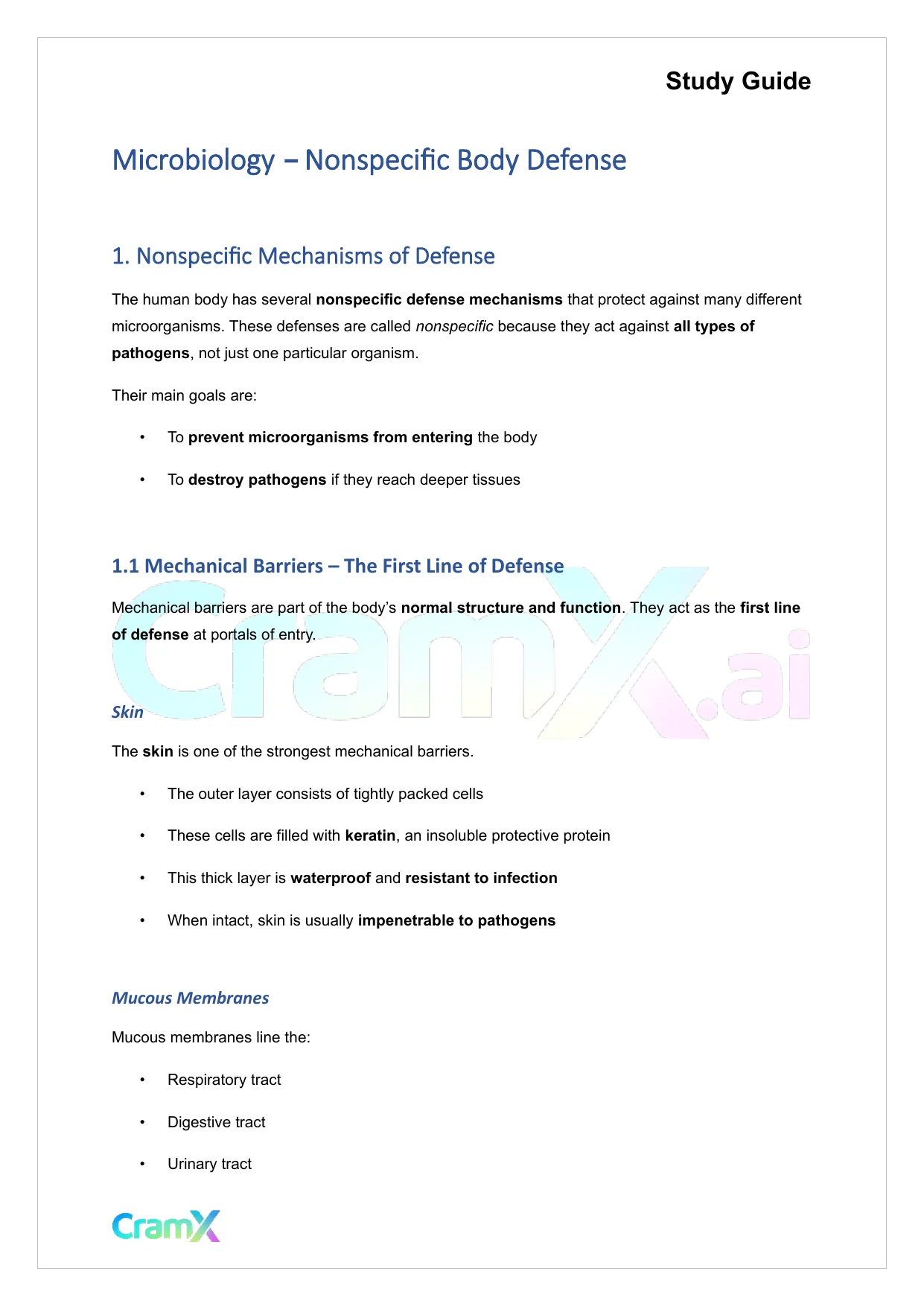 This document provides study materials related to Microbiology - Nonspecific Body Defense. It may include explanations, summarized notes, examples, or practice questions designed to help students understand key concepts and review important topics covered in their coursework.