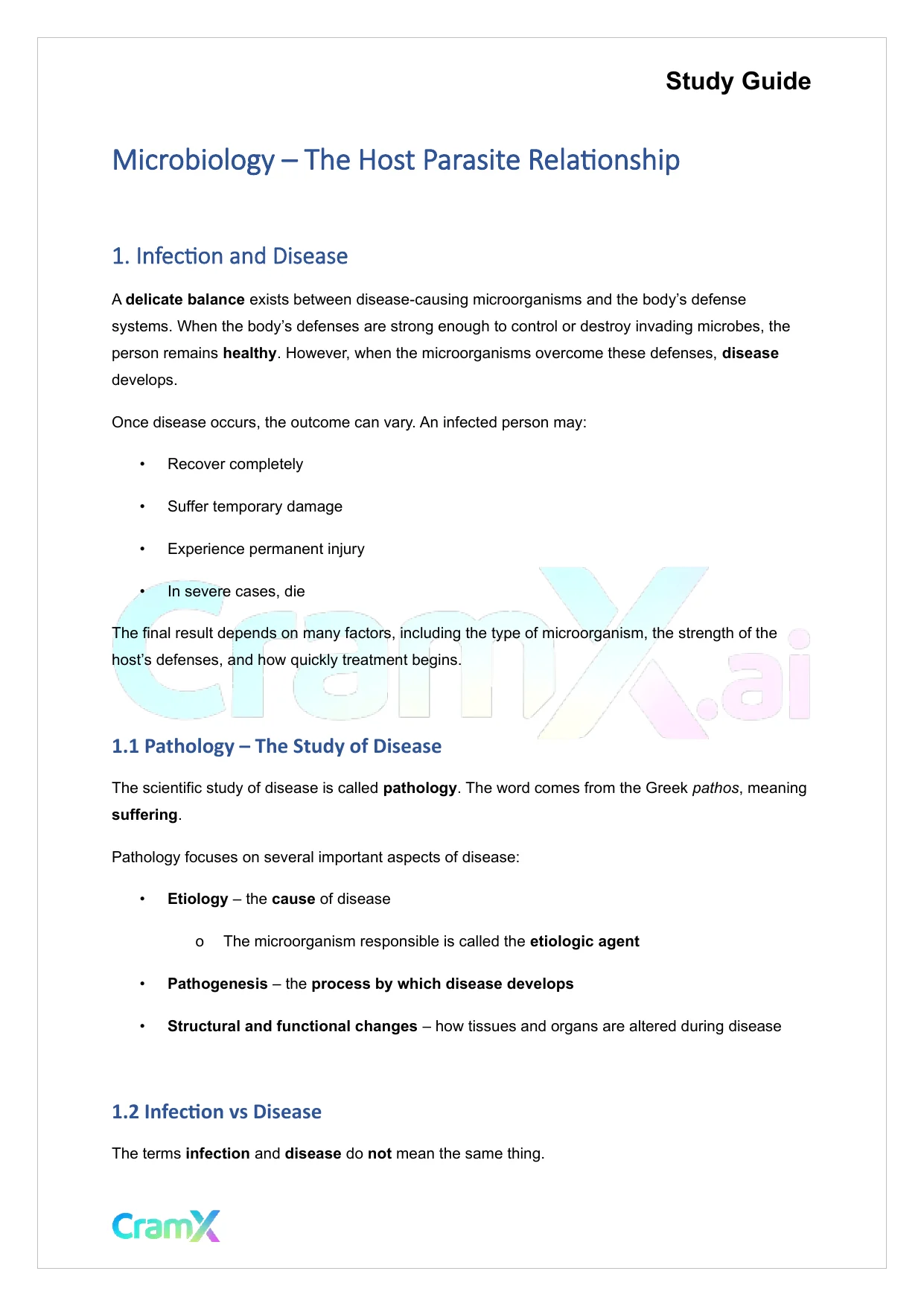 This document provides study materials related to Microbiology - The Host Parasite Relationship. It may include explanations, summarized notes, examples, or practice questions designed to help students understand key concepts and review important topics covered in their coursework.