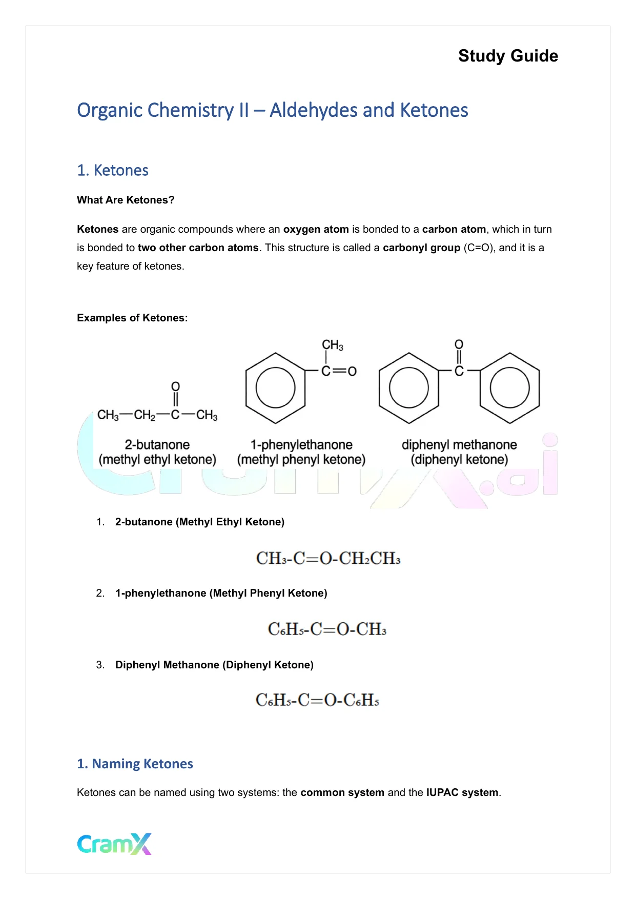 This document provides study materials related to Organic Chemistry II - Aldehydes and Ketones. It may include explanations, summarized notes, examples, or practice questions designed to help students understand key concepts and review important topics covered in their coursework.
