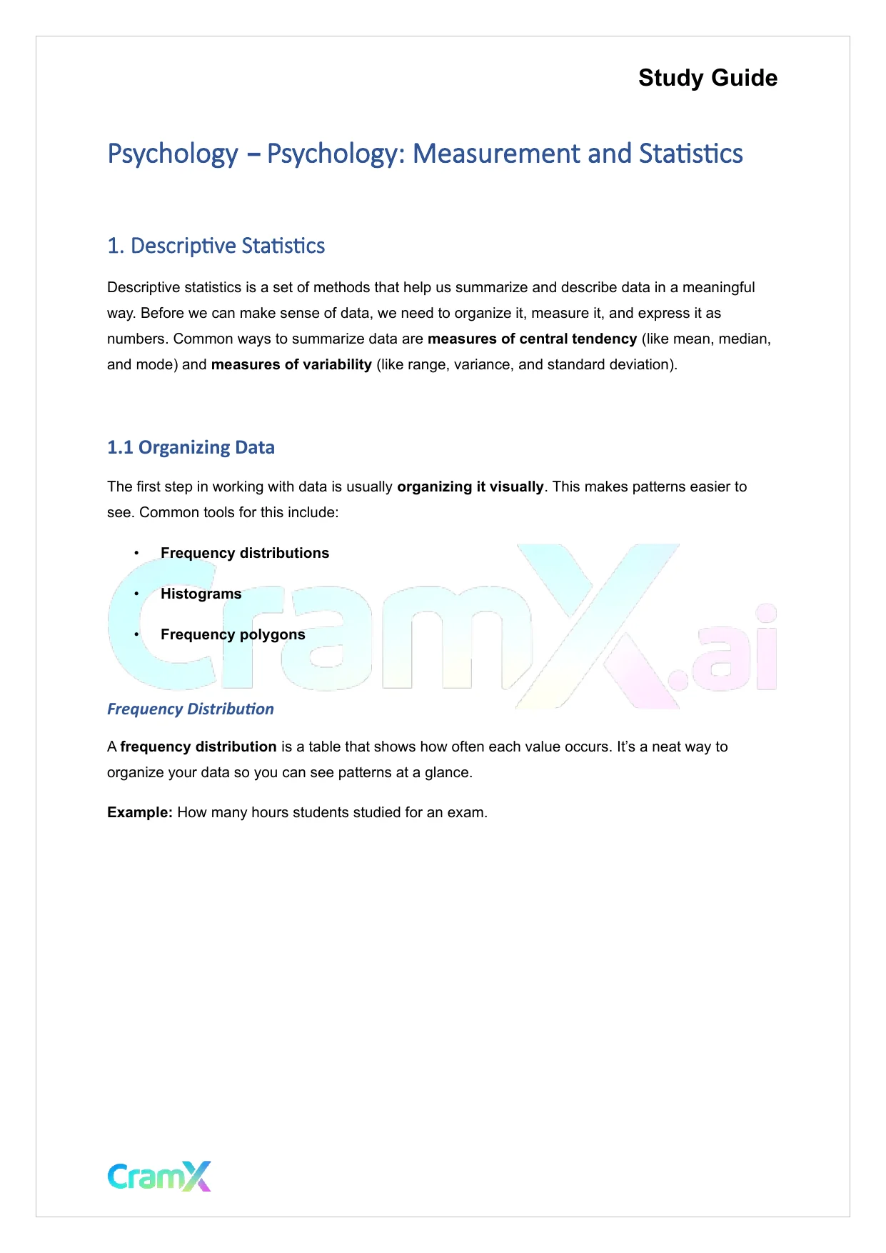 Students studying Psychology or related courses can use this material as a reference when preparing for assignments, exams, or classroom discussions. Resources on CramX may include study notes, exam guides, solutions, lecture summaries, and other academic learning materials.