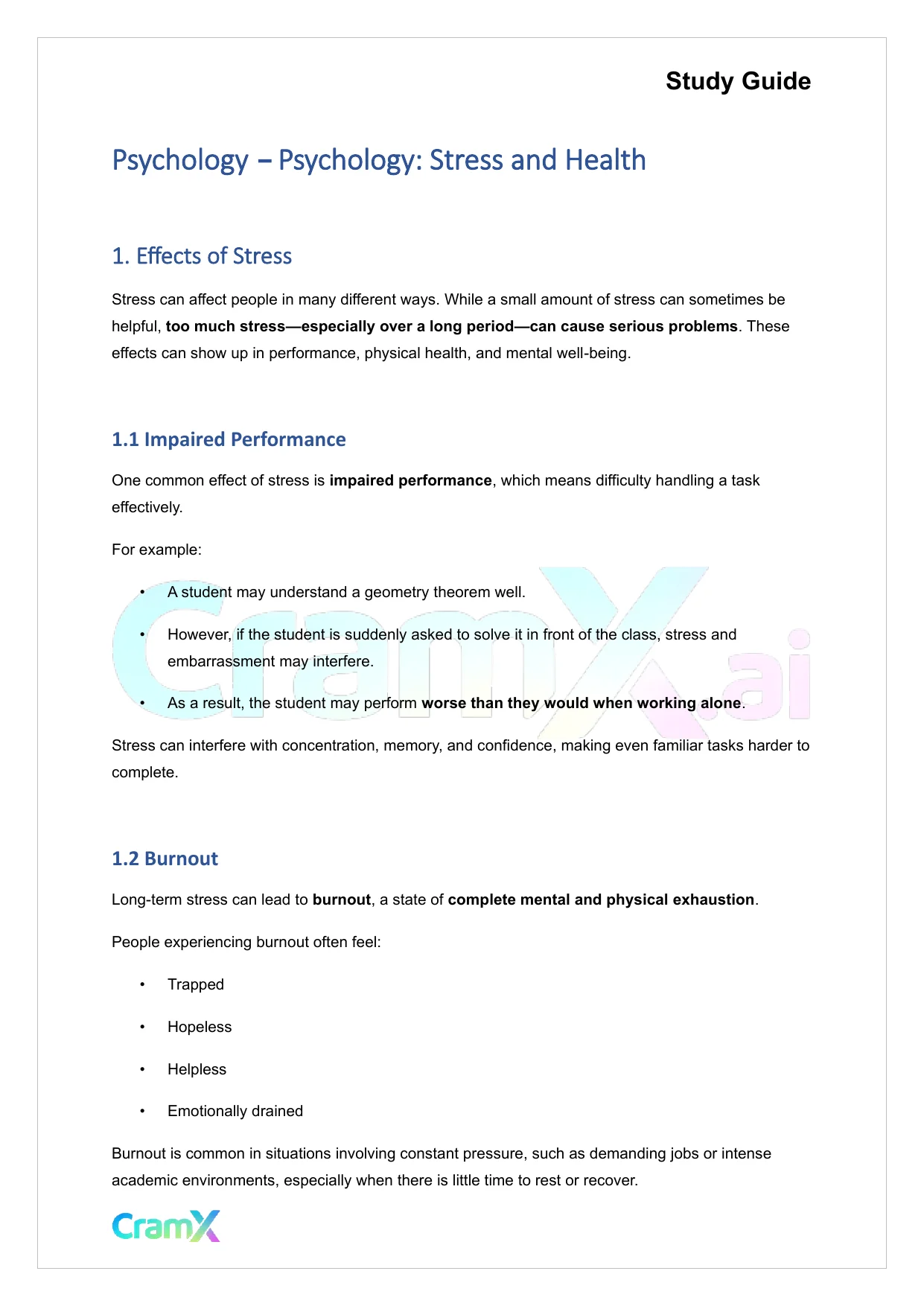 This document provides study materials related to Psychology - Psychology Stress and Health. It may include explanations, summarized notes, examples, or practice questions designed to help students understand key concepts and review important topics covered in their coursework.