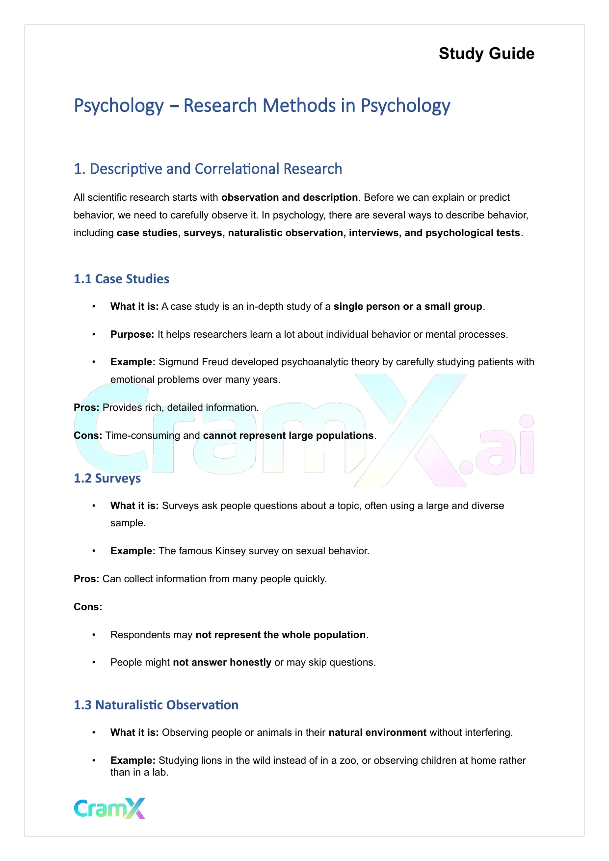This document provides study materials related to Psychology - Research Methods in Psychology. It may include explanations, summarized notes, examples, or practice questions designed to help students understand key concepts and review important topics covered in their coursework.