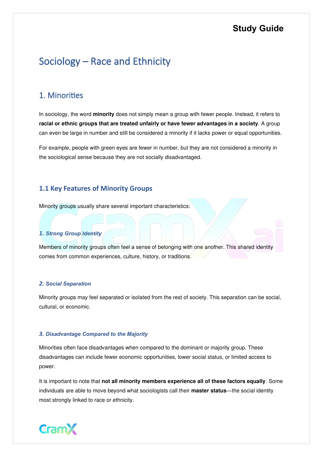 Students studying Sociology or related courses can use this material as a reference when preparing for assignments, exams, or classroom discussions. Resources on CramX may include study notes, exam guides, solutions, lecture summaries, and other academic learning materials.