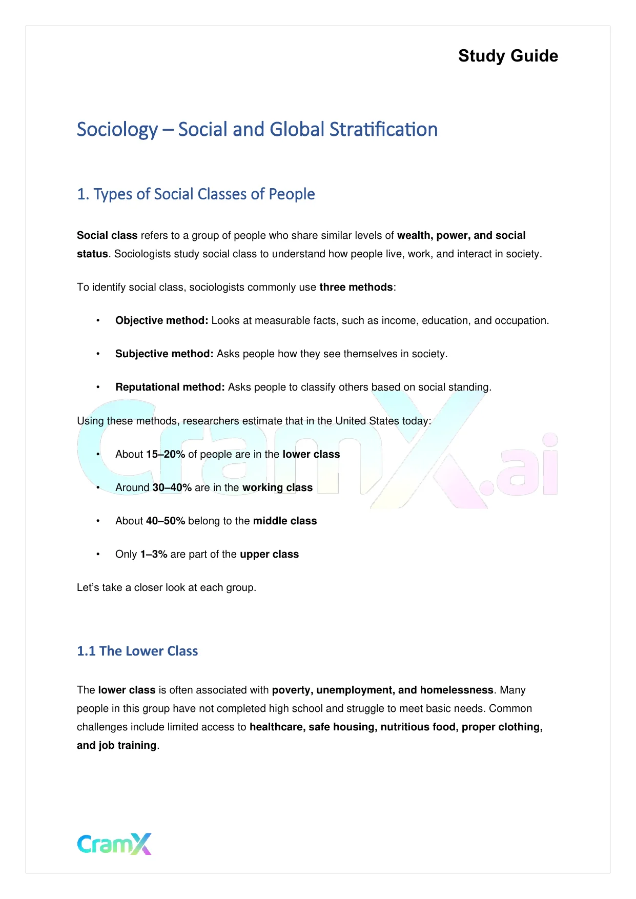 Students studying Sociology or related courses can use this material as a reference when preparing for assignments, exams, or classroom discussions. Resources on CramX may include study notes, exam guides, solutions, lecture summaries, and other academic learning materials.