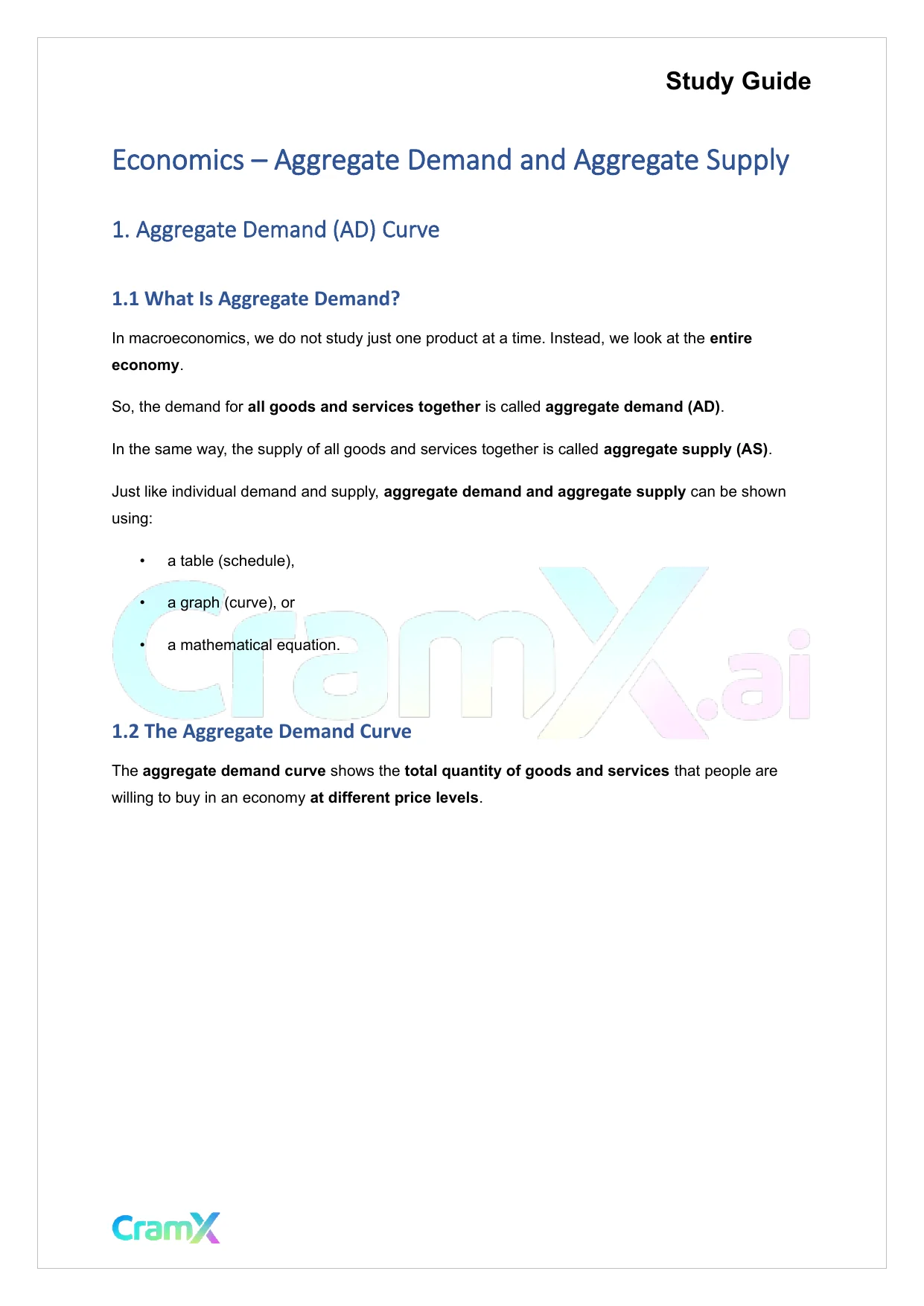 This document provides study materials related to Economics - Aggregate Demand and Aggregate Supply. It may include explanations, summarized notes, examples, or practice questions designed to help students understand key concepts and review important topics covered in their coursework.