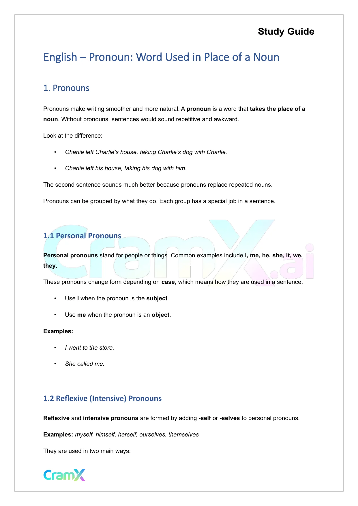 This document provides study materials related to English - Pronoun Word Used in Place of a Noun. It may include explanations, summarized notes, examples, or practice questions designed to help students understand key concepts and review important topics covered in their coursework.