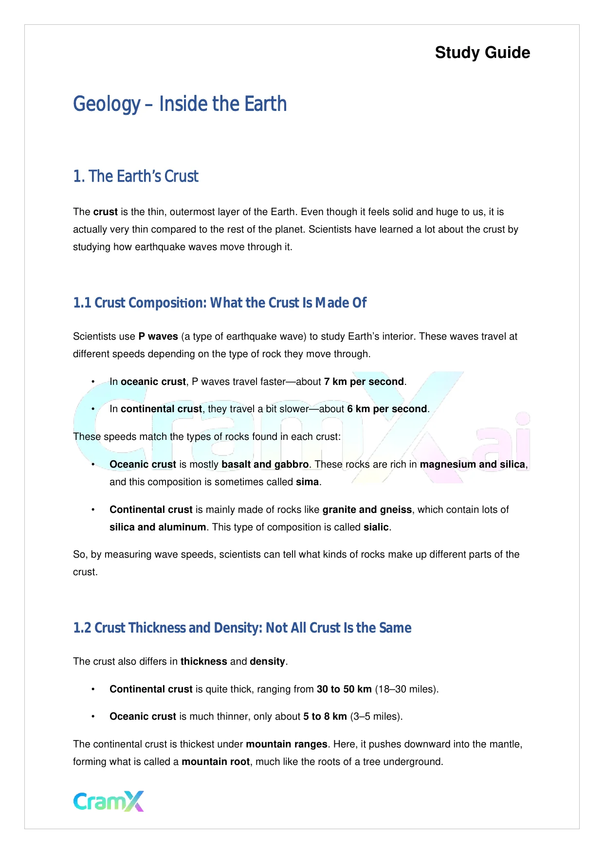 Students studying Geology or related courses can use this material as a reference when preparing for assignments, exams, or classroom discussions. Resources on CramX may include study notes, exam guides, solutions, lecture summaries, and other academic learning materials.