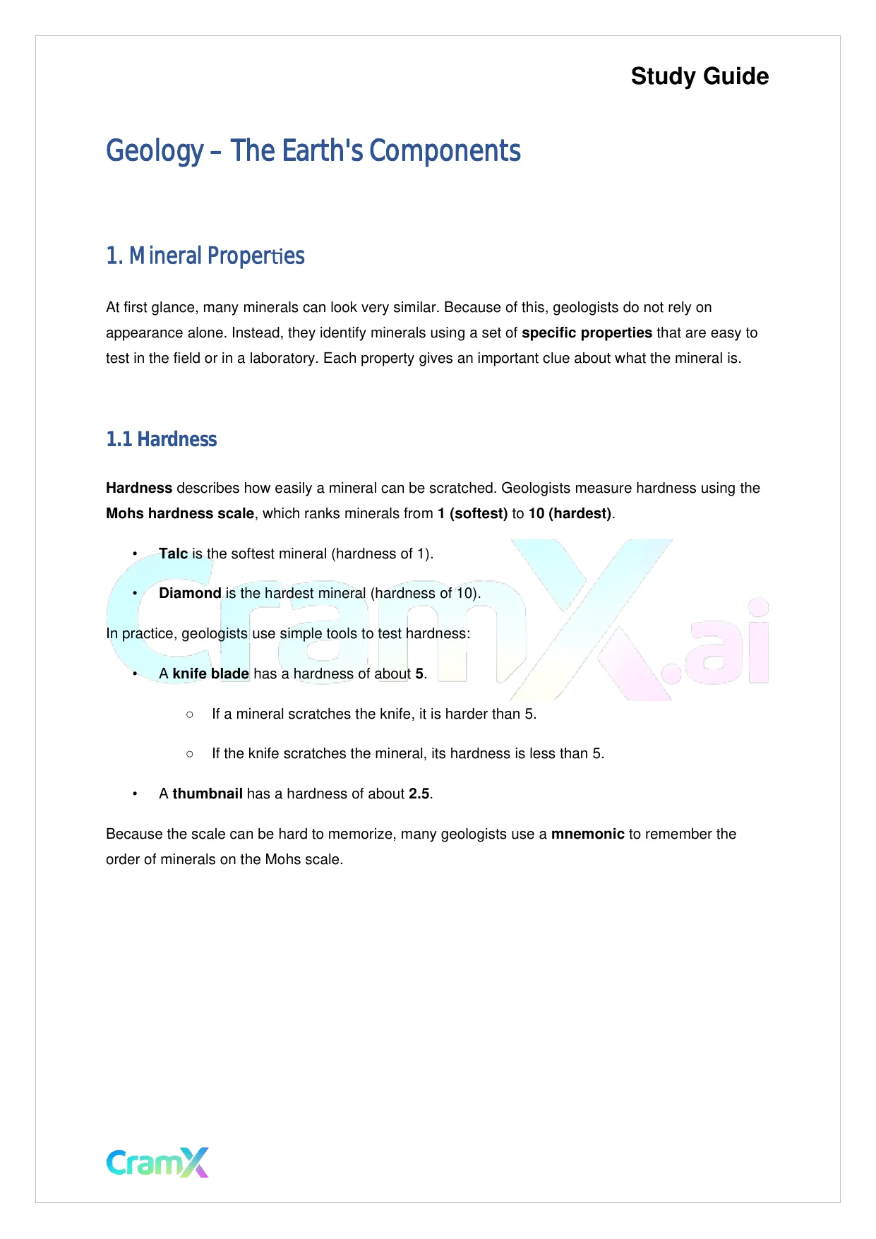 Students studying Geology or related courses can use this material as a reference when preparing for assignments, exams, or classroom discussions. Resources on CramX may include study notes, exam guides, solutions, lecture summaries, and other academic learning materials.