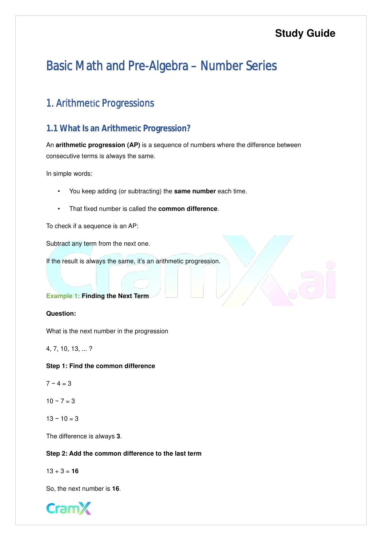 This document provides study materials related to Basic Math and Pre-Algebra - Number Series. It may include explanations, summarized notes, examples, or practice questions designed to help students understand key concepts and review important topics covered in their coursework.