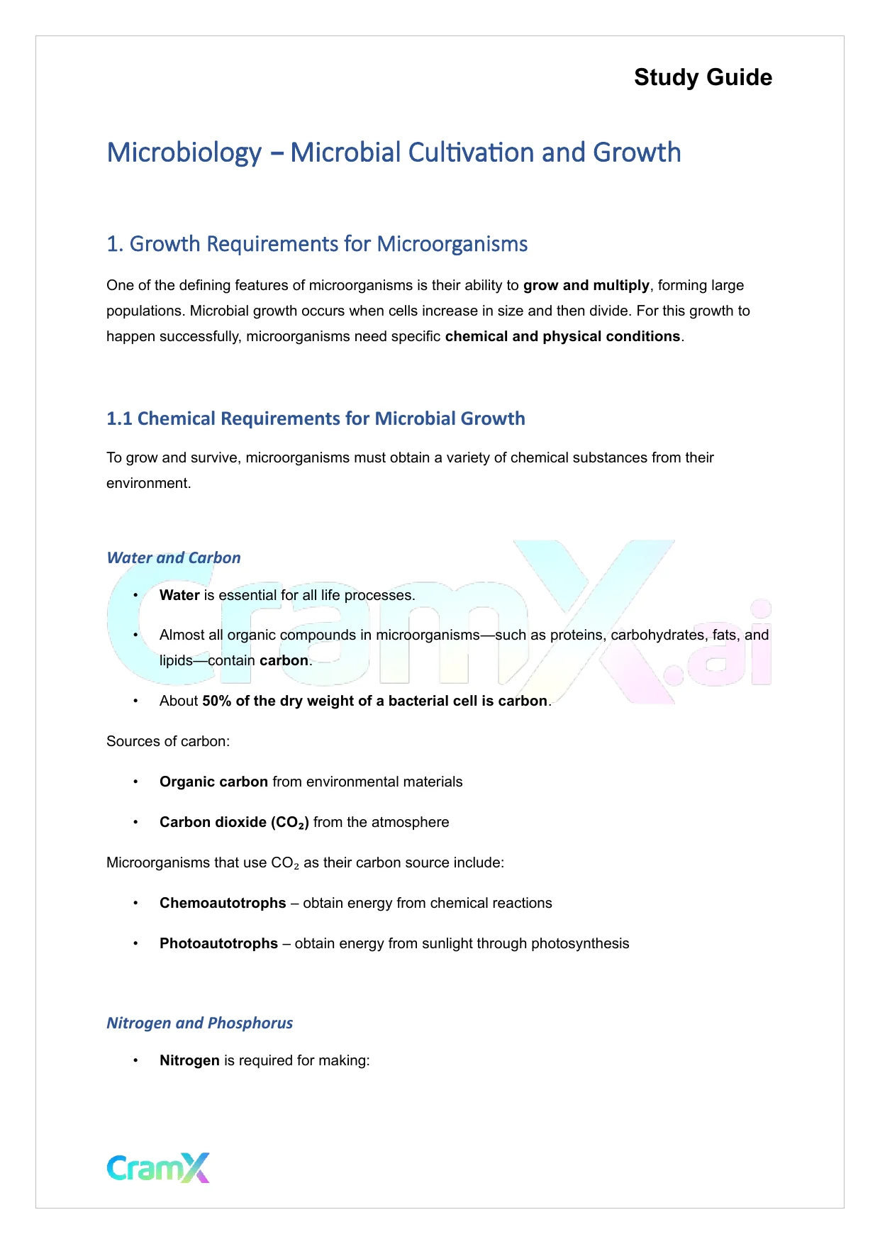 Students studying Microbiology or related courses can use this material as a reference when preparing for assignments, exams, or classroom discussions. Resources on CramX may include study notes, exam guides, solutions, lecture summaries, and other academic learning materials.