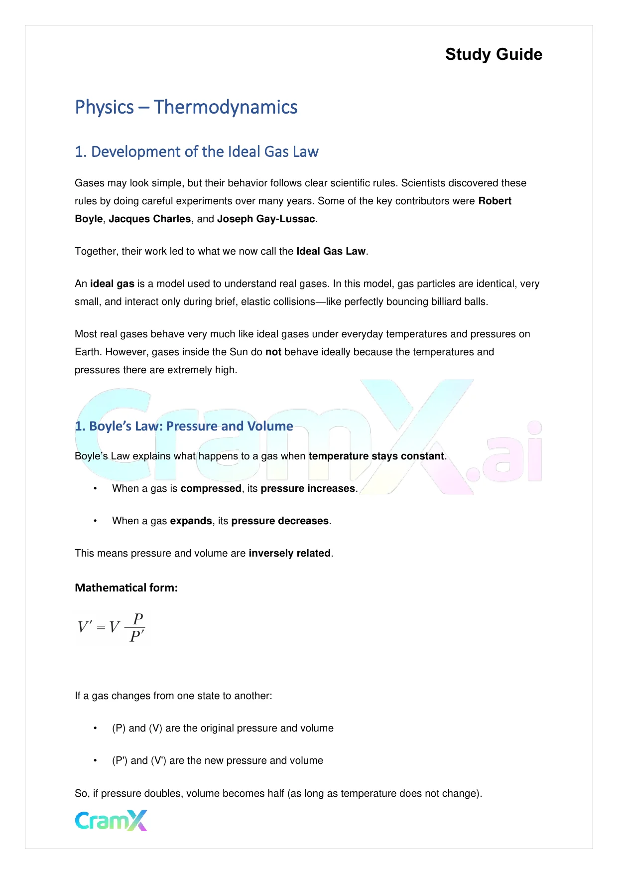 This document provides study materials related to Physics – Thermodynamics. It may include explanations, summarized notes, examples, or practice questions designed to help students understand key concepts and review important topics covered in their coursework.