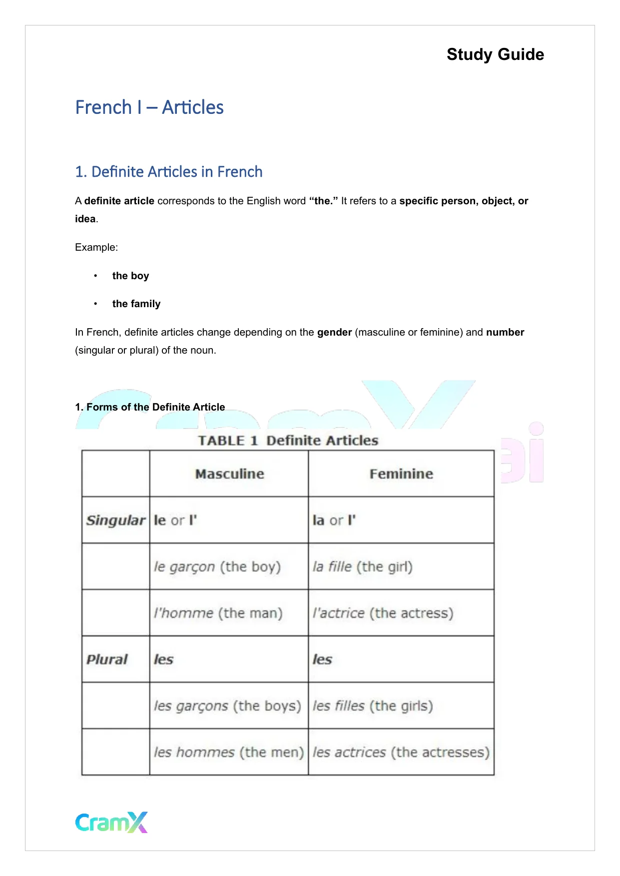 This document provides study materials related to French I - Articles. It may include explanations, summarized notes, examples, or practice questions designed to help students understand key concepts and review important topics covered in their coursework.