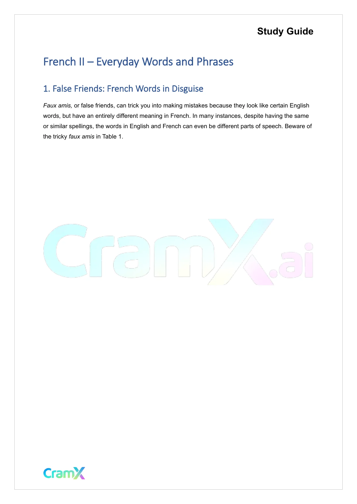 This document provides study materials related to French II – Everyday Words and Phrases. It may include explanations, summarized notes, examples, or practice questions designed to help students understand key concepts and review important topics covered in their coursework.